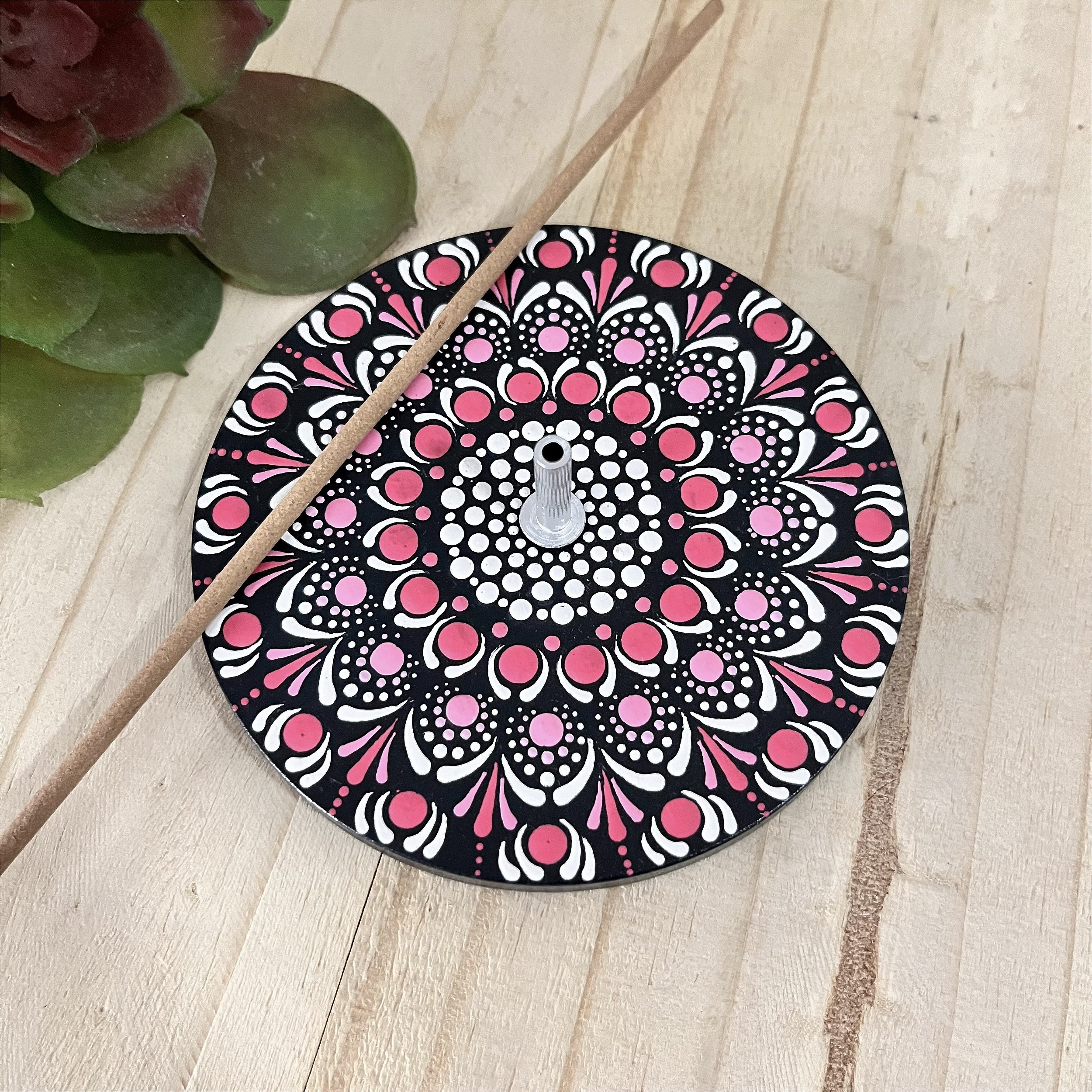Pintado 100% à mão em pontilhismo, cada ponto é aplicado com intenção e presença, transformando o uso do incenso em um ritual de cuidado e conexão interior.
