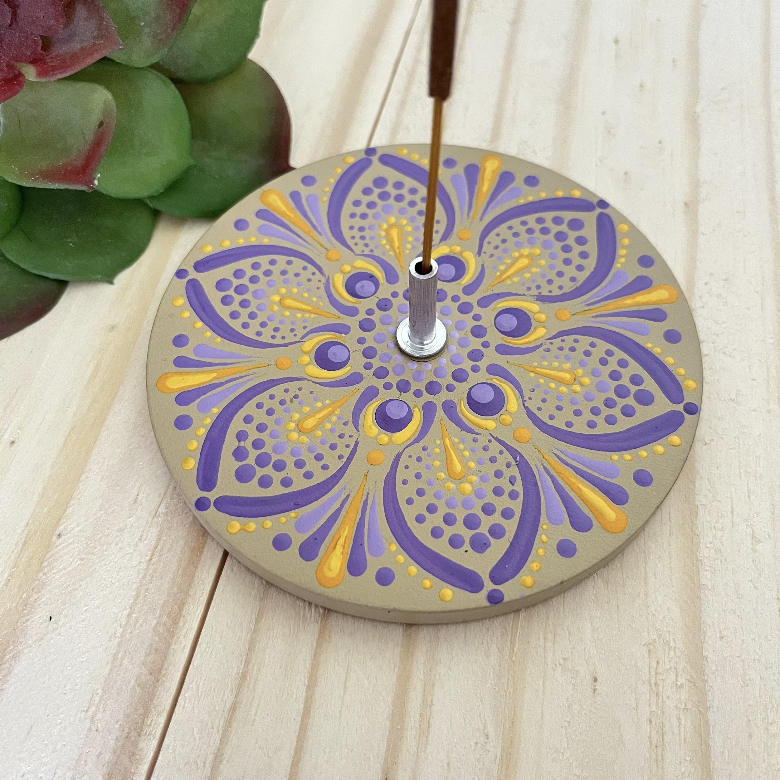 Pintado 100% à mão em pontilhismo, cada ponto é aplicado com intenção, transformando o uso do incenso em um ritual de presença, purificação e alinhamento interior.